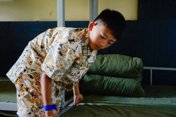教官与营员同吃同训同住,杜绝孩子打闹、嬉戏、争吵、斗殴等不文明现象。