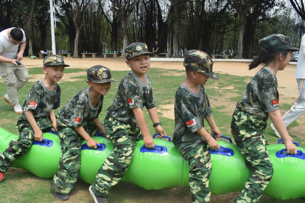 执行军人一日生活制度,内务卫生制度,培养良好的生活自理习惯;通过“授衔、授勋”等各种举措,营造“真正的军旅”一样,增强孩子们的仪式感、荣誉感;通过深入进行军事体能训练,结合军事文化课堂的方式,由外向内渗透,彻底解决内心不良根源,达到身心合一,想到可以做到,从而达到自律;通过军、教、游、学、练,锤炼孩子坚强不屈的品格,磨练毅力;塑造坚强、刚毅、守纪、紧张、独立的军人品质,培养讲形象、爱卫生、懂礼貌的良好习惯,养成军人般的作风,突出行为习惯养成教育。