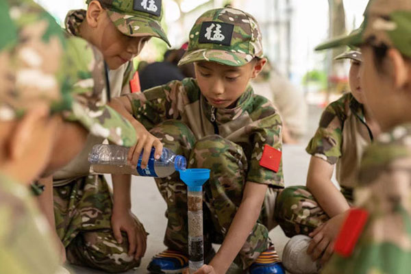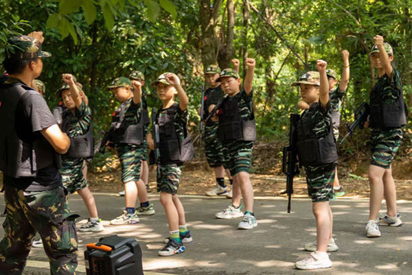 2、军事拓展体验:军事拓展将帮助孩子挑战自我,挖掘潜能,提高团队合作意识、自我管理能力、责任感、协调沟通能力,激发创新思维。