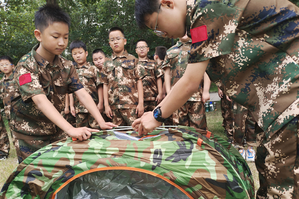 【郑州7天中原利剑军事夏令营】叠军被+95式自动步枪分解结合训练