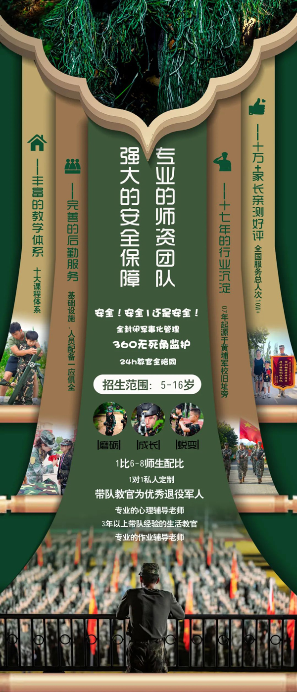我们不仅有经验丰富的军事教官,还有专业的拓展策划师、心理老师、生活教官、摄影师、后勤教官等,更能全方位服务好每一位家长和孩子。