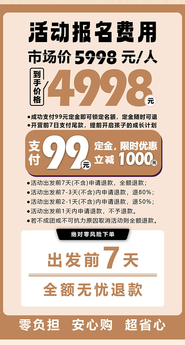 活动出发前1天内申请退款,不予退款。